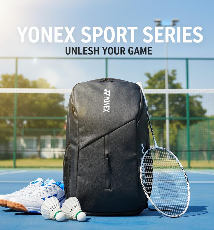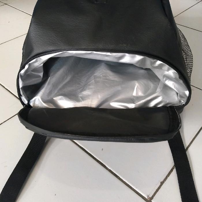 TAS RANSEL BADMINTON HITAM MEWAH SPON KULIT JERUK WATERPROOF