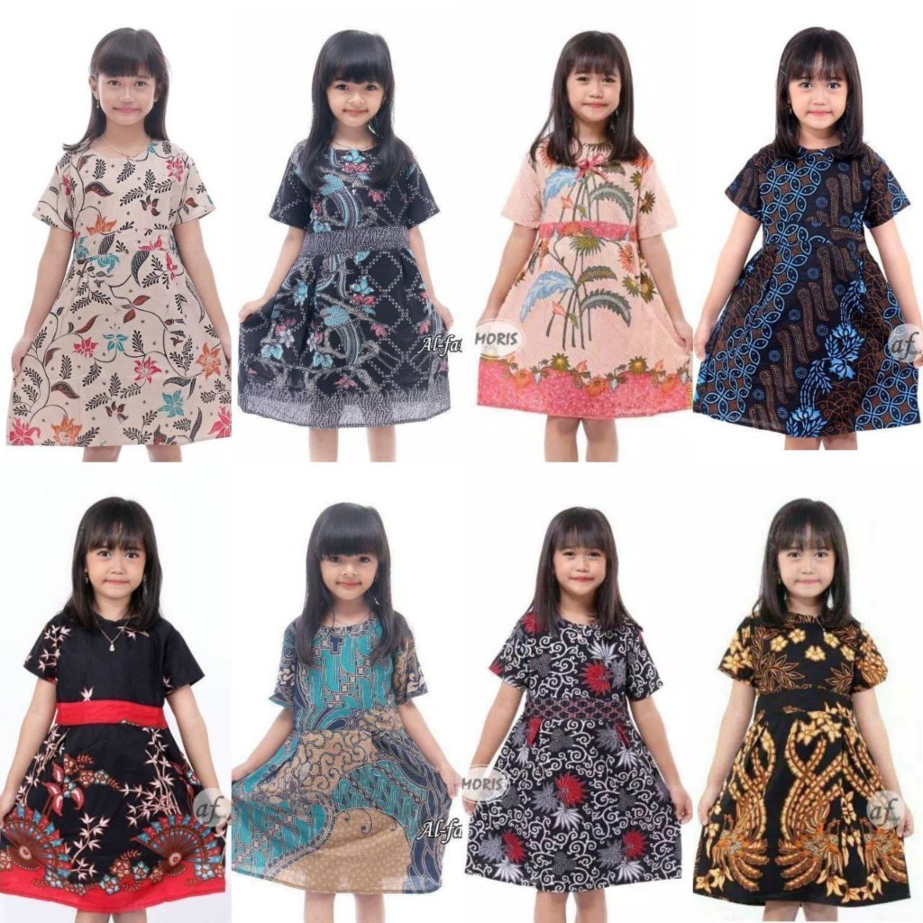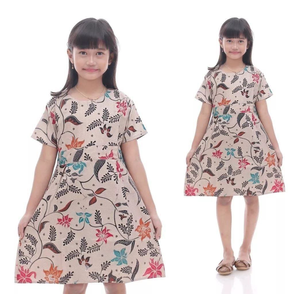 Dress Batik Anak Perempuan Umur 2-10 Tahun - Motif Batik Bervariasi - Batik Anak Harga Ecer Bisa