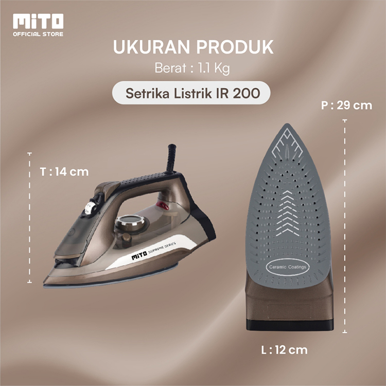 MITO IRON200 Setrika Uap dan Kering 4in1 | Setrika Listrik | Mode Uap, Kering, Semburan Uap, Semprotan Air | Alas Cerami