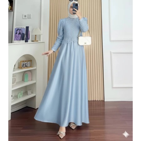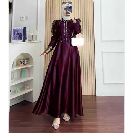 Gamis - baju gamis - dress - Dress Sakura Matt Silk Roberto Mix Brukat Aplikasi Payet Mutiara Dress Pesta Mewah Kekinian