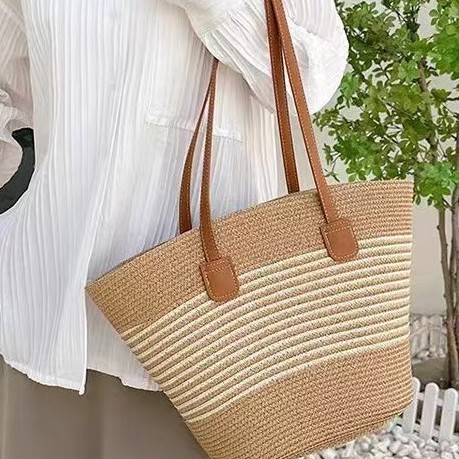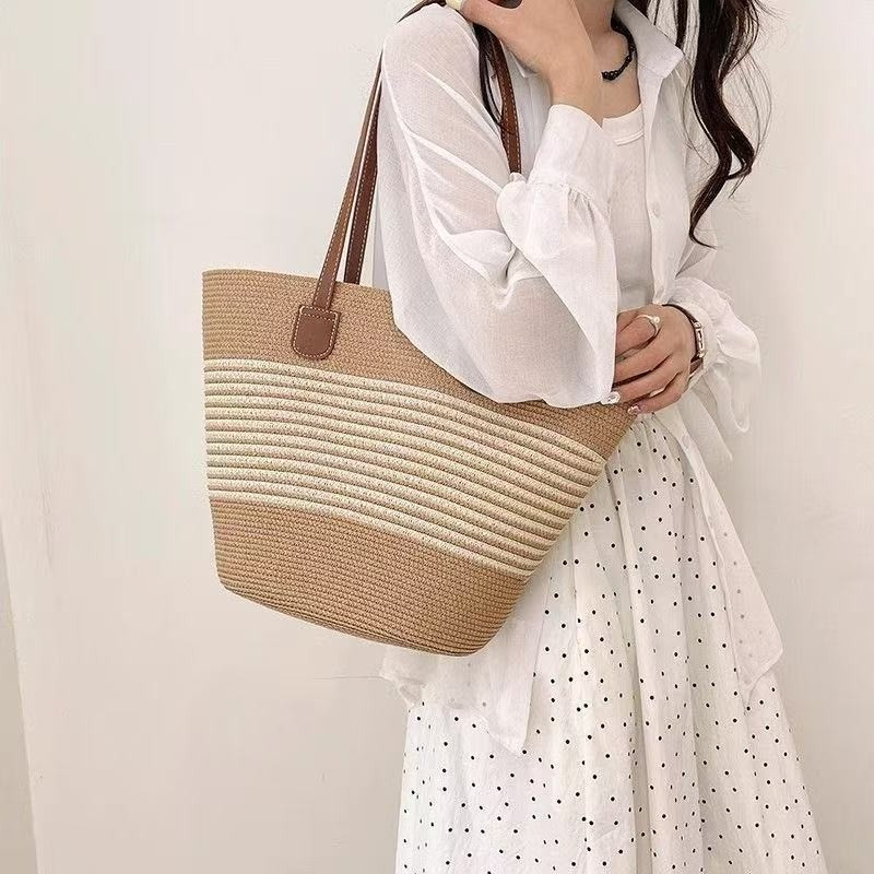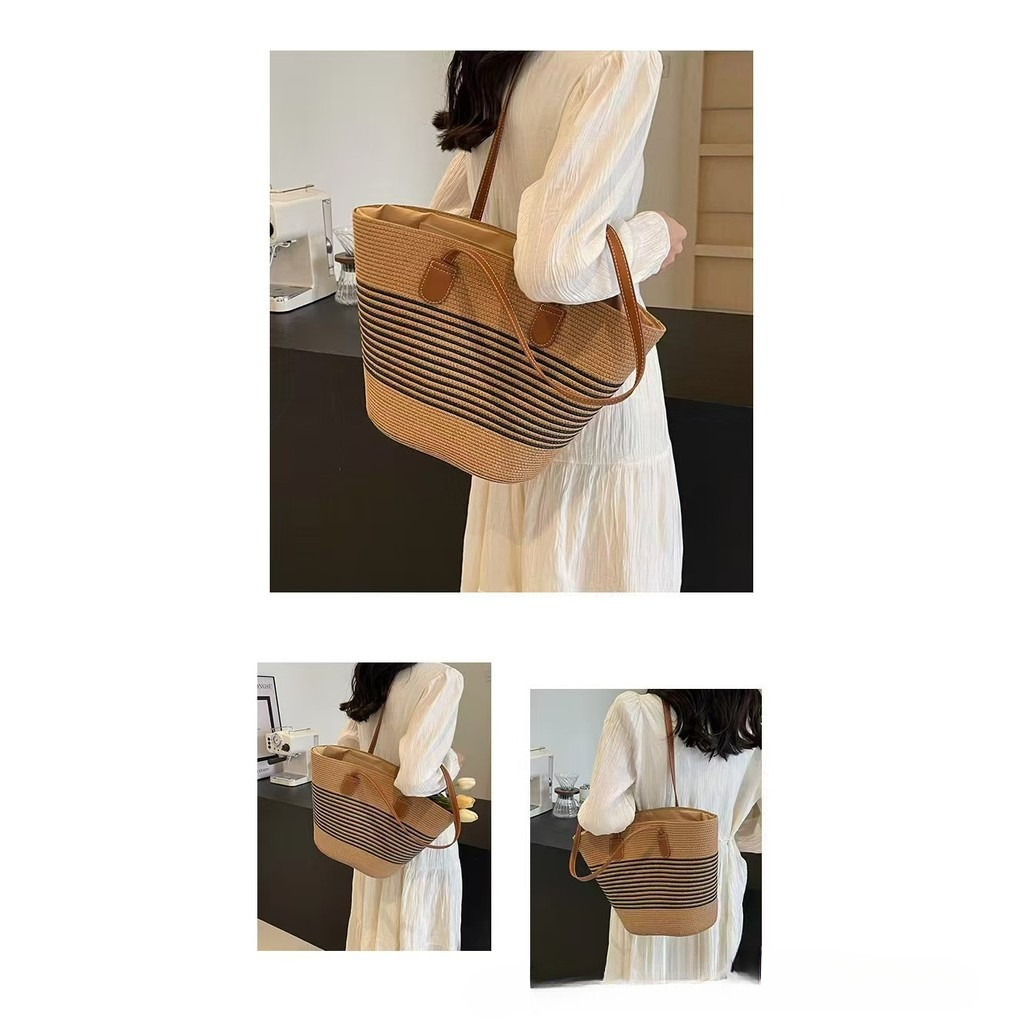 Tote Bag Wanita Anyaman Besar Tas Pantai Trendy Untuk Kuliah & Travel