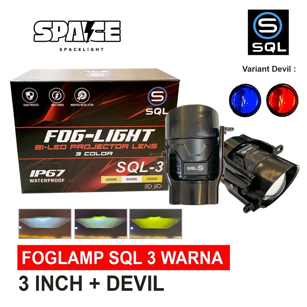 Foglamp Biled Foglight Bilens 3 Inch SQL Bluelens 3 Warna With Devil Eye Waterproof IP 67 Bracket Komplit
