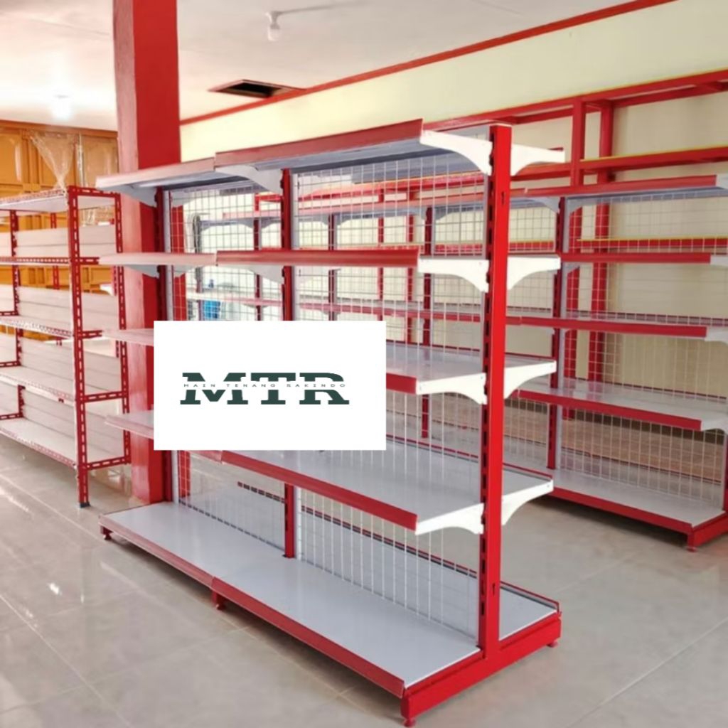 Rak Minimarket Double T 150 Gondola Display Supermarket Etalase Jualan Anti Karat