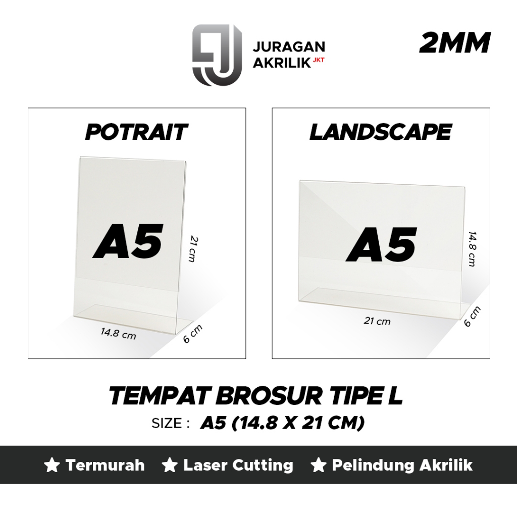 Brosur Akrilik A5 2MM / Acrylic Tent Card Holder / Tent Holder Akrilik / QRis Bar Akrilik / Stand Akrilik A5