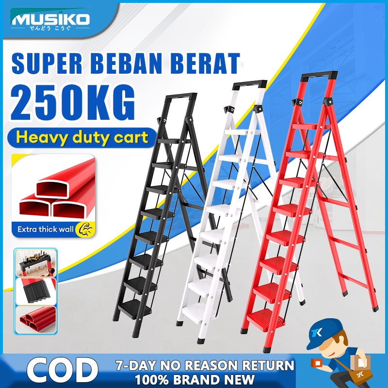 Musiko Tangga Lipat Premium 3-8 Tingkat - Aluminium Tahan Lama, Beban Super Berat, Aman & Portabel untuk Rumah Tangga Ho