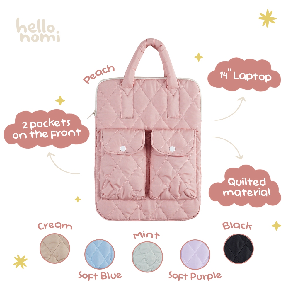 Yumna Laptop Sleeve puffy Quilted Bag With 2 Extra Pocket | Tas Softcase Pelindung Laptop dengan 2 kantong tambahan