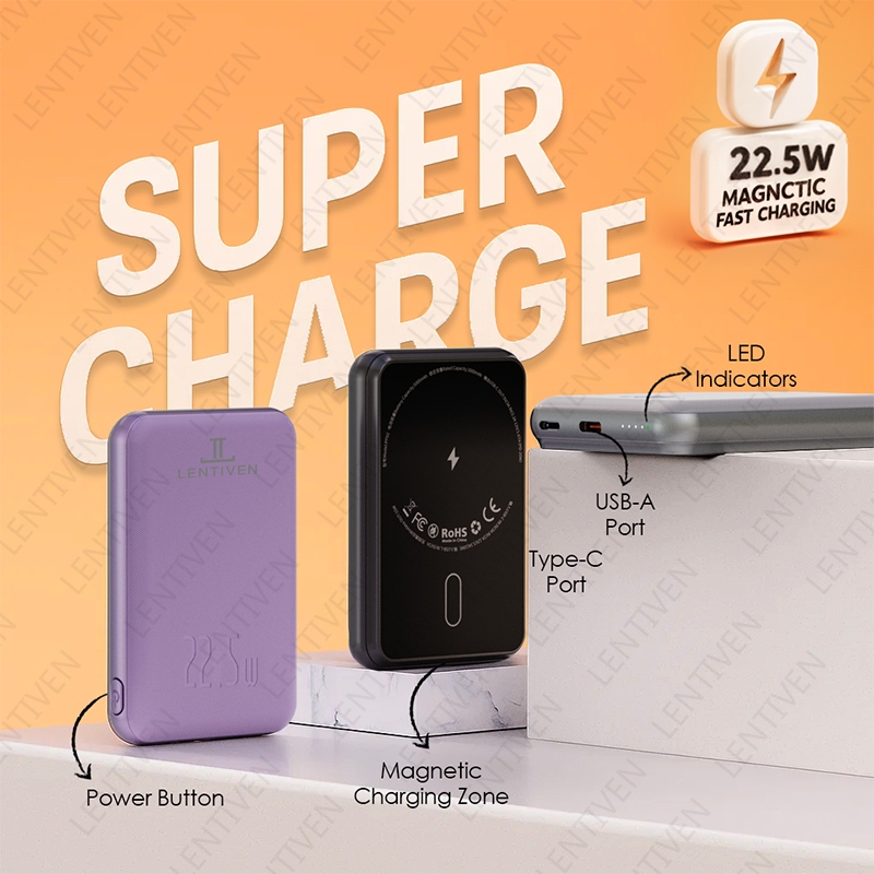 [Mall] YIBAO LENTIVEN Powerbank Wireless 10000Mah Mini Fast Charging Magsafe Magnetic 20W For Iphone Garansi 1 Tahun CWH