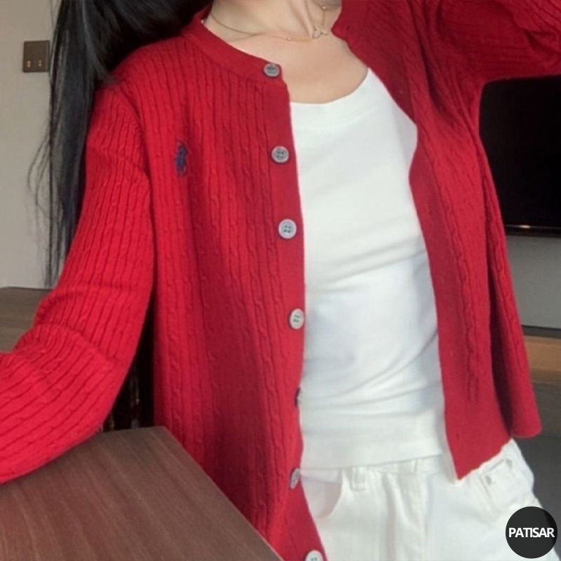 Kardigan Pendek Wanita Mantel Sweter Putar Kardigan Rajutan Antik Bordir Pa