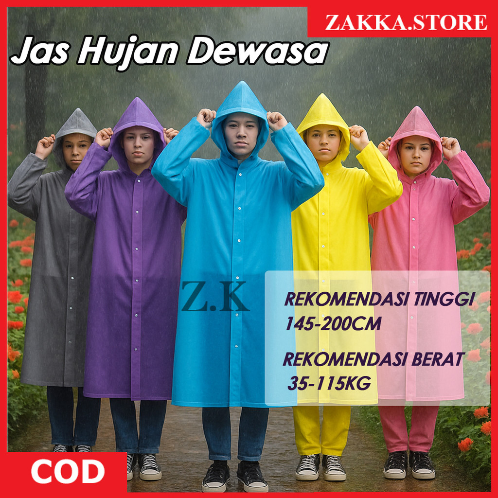 Zakka Jas Hujan Plastik EVA Tebal Tali Topi Transparan Jas Hujan Poncho Korea EVA Anti Air All Size
