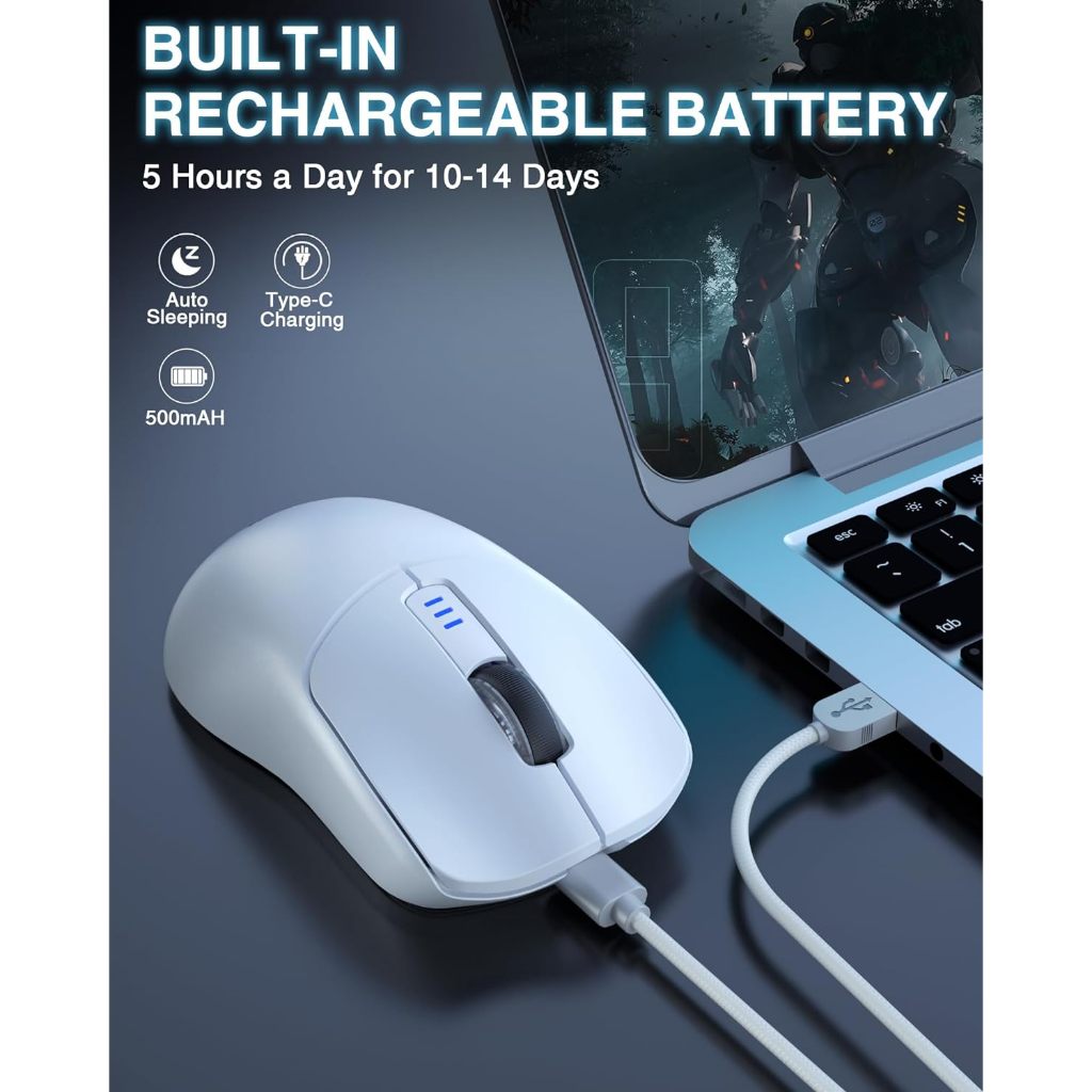 Aula Mouse Gaming Wireless Sc580 Tri-Mode 2.4G/Bt5.0/Usb-C Rechargeable Design Ergonomic Mouse Komputer Laptop/Pc/Mac/Ta