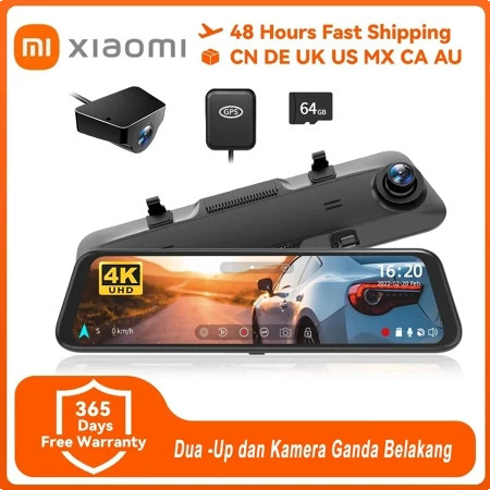 Lokal Stok Xiaomi Dashcam Mobil WIFI GPS 4K DVR Car Camera 10'' IPS Touch Kamera Screen Dash Cam Rearview Mirror Full HD