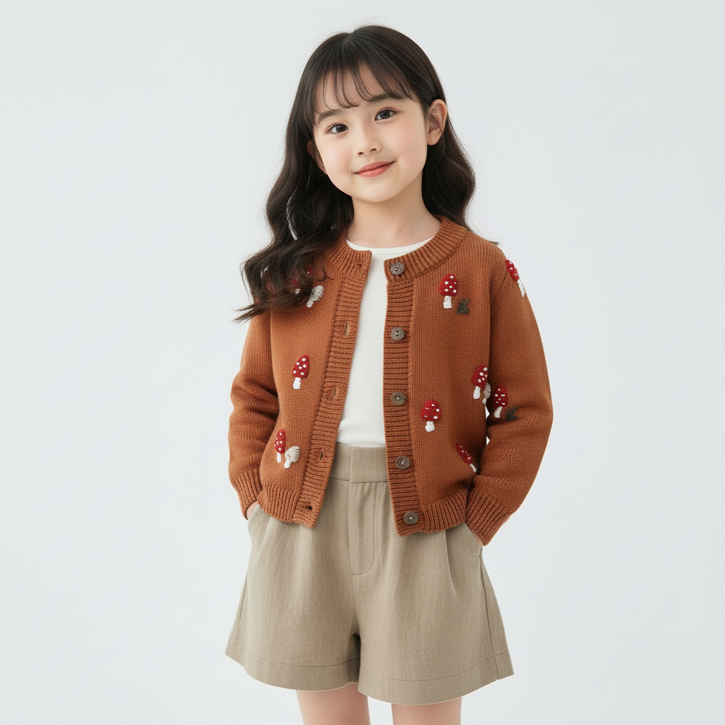 Cardigan Rajut Anak Perempuan Mushroom Baju Anak Cewek Cardy Premium Umur 1 - 2 - 3 - 4 - 5 Tahun