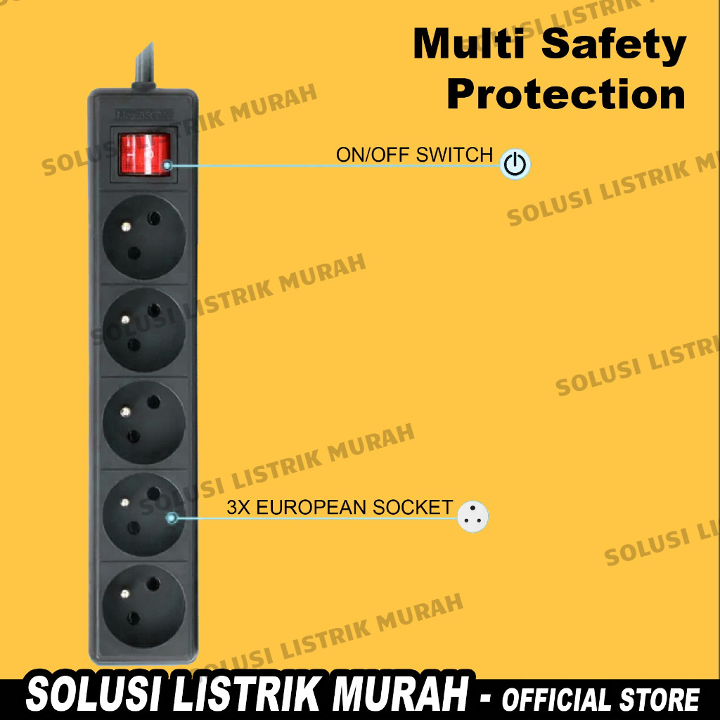 Stop Kontak Arde Hitam SNI Colokan Listrik Kuningan 5, 4, 3 Lubang. Stop Kontak Kabel 1,5 - 3 - 5 - 10 meter + saklar Te