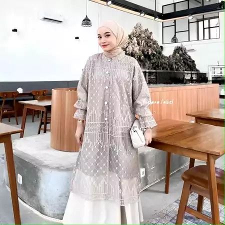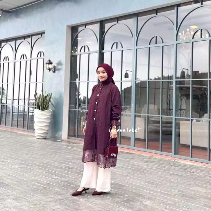 Aluna Tunik Outer Brukat Kondangan Tunik Brukat Tunik Wanita Kekinian New Series Burgundy Free Bross