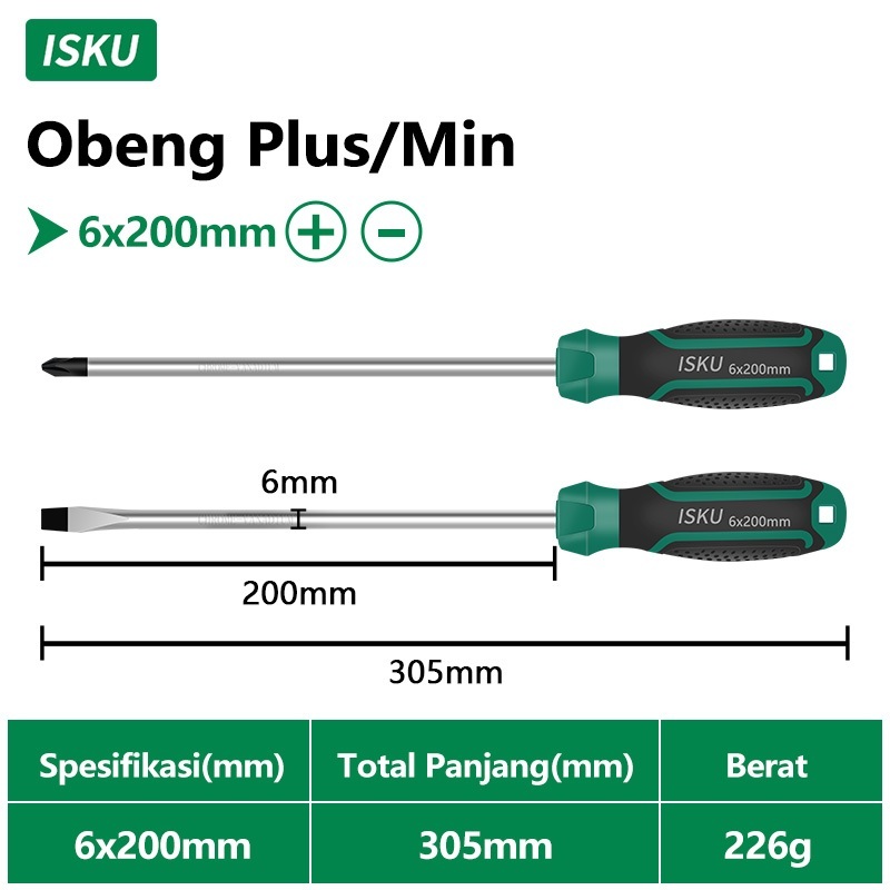 FLASH SALE Obeng Set 2PCS 6200mm Obeng Plus (+) Minus () Screwdriver Set Gagang Karet