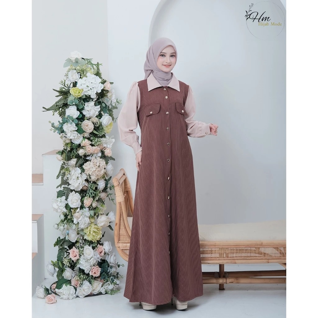 Baju gamis - gamis wanita - Gamis Semiwoll Premium Gamis Kekinian Gamis bahan Semiwoll Malorca Gamis Salur Terbaru Gamis