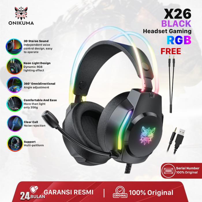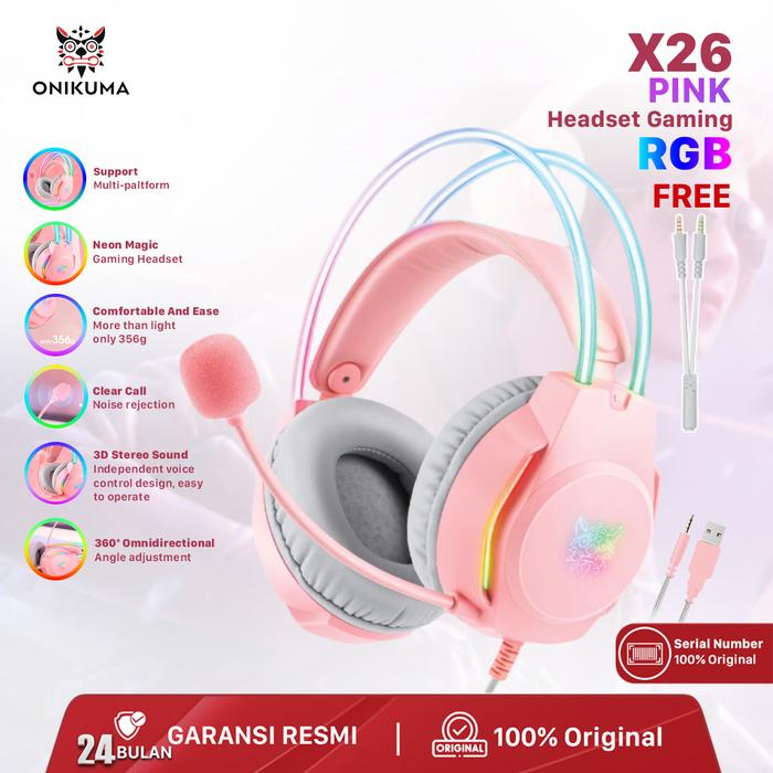 ONIKUMA HEADSET GAMING STEREO TELINGA KUCING - GAME E-SPORT - MIX ALL VARIAN - HEADPHONE GAMING - HEADPHONE KEREN - HEADSET UNISEX RGB - X26 PINK