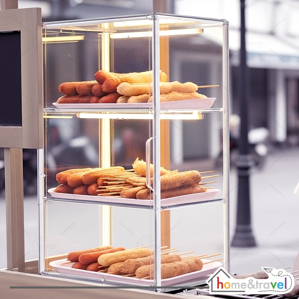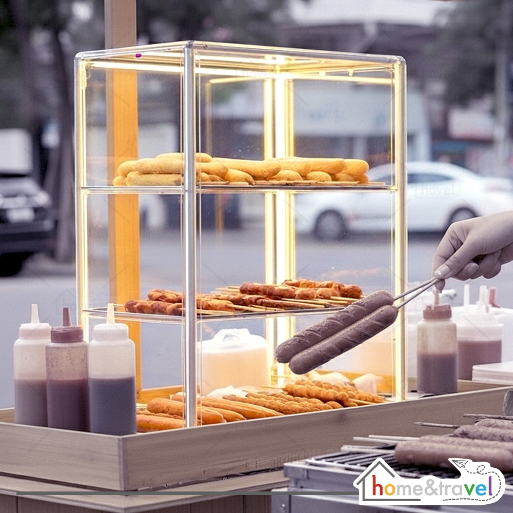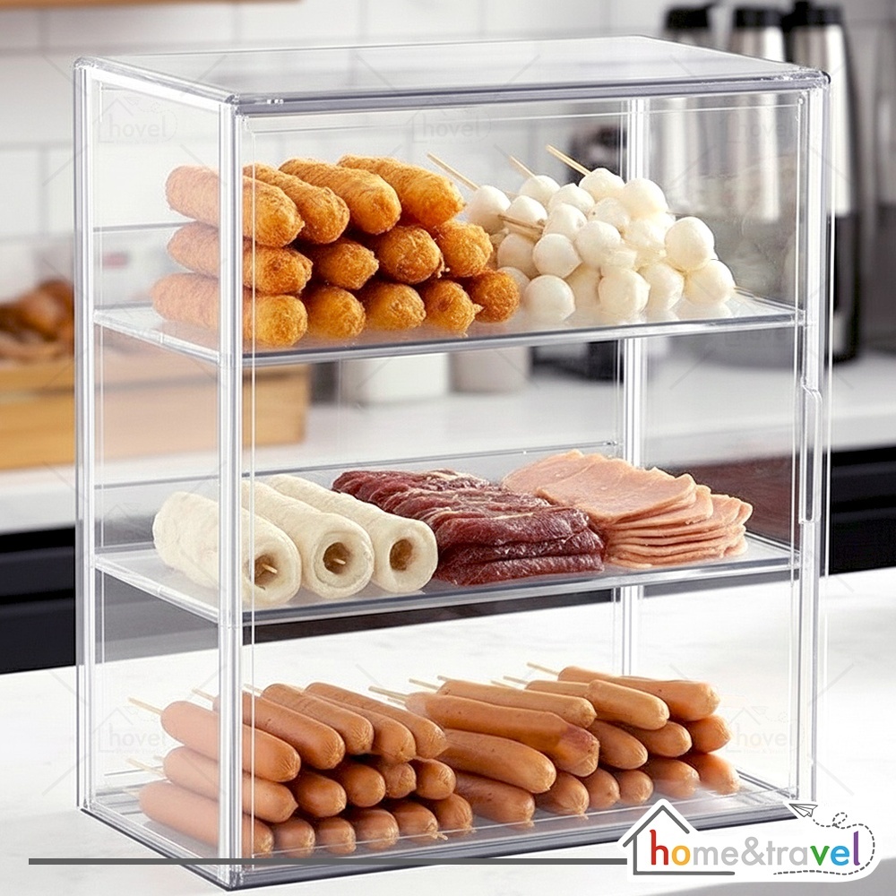 HOVELSHOP Rak Akrilik Tempat Jualan Gorengan Jajanan Makanan Bazzar Box Display 2 3 Susun Anti Pecah Portable
