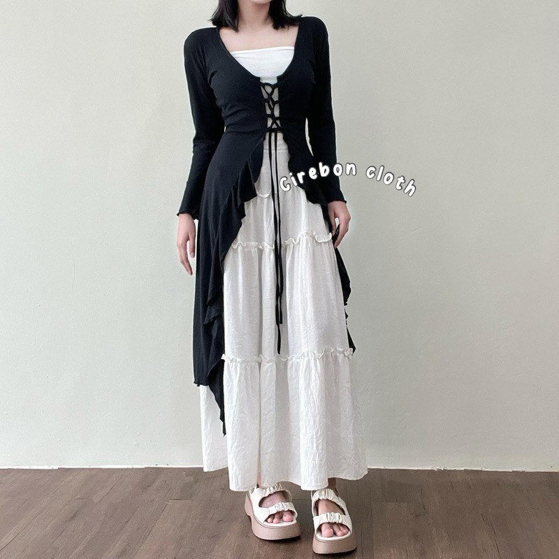 KIYANA Cirebon Cloth - Rose Ballerine Cardigan / Cardigan Ruffle / Long Cardy / Long Outer