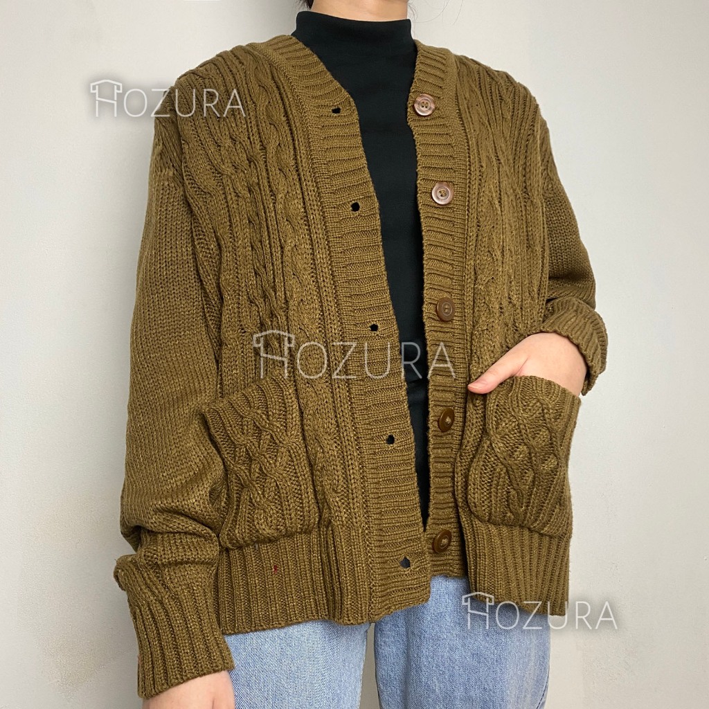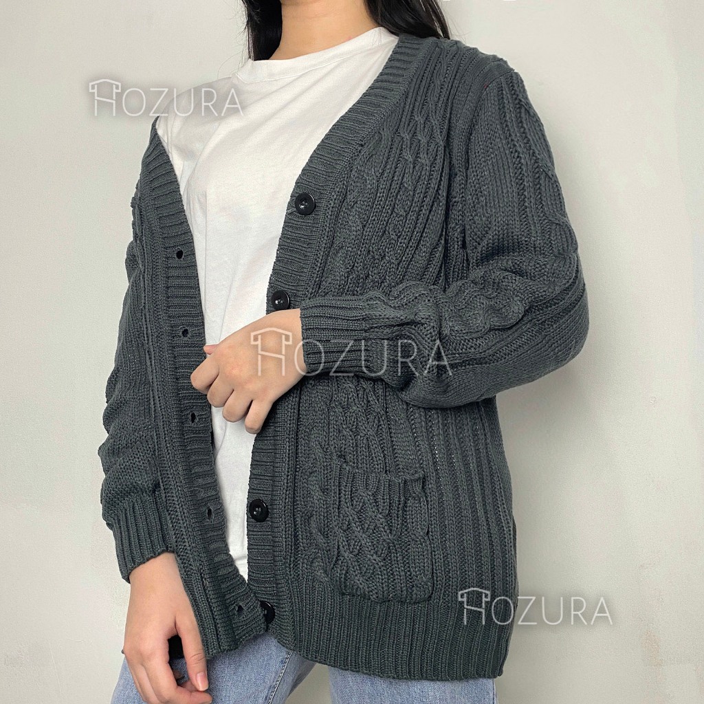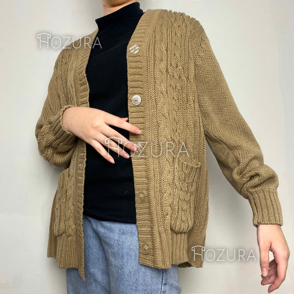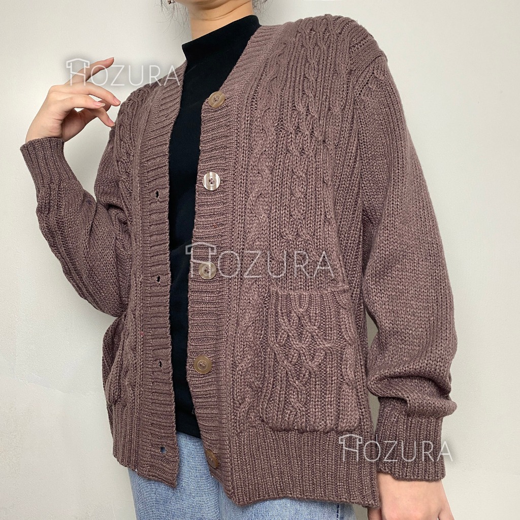 Hozura - Cardigan Sweater Rajut Wanita Lanna (Batta) - Cardigan Rajut Jumbo Oversize Tebal - Outer Wanita - Sweater Kore
