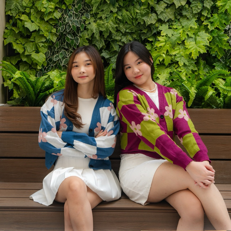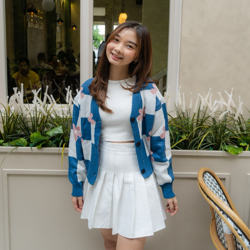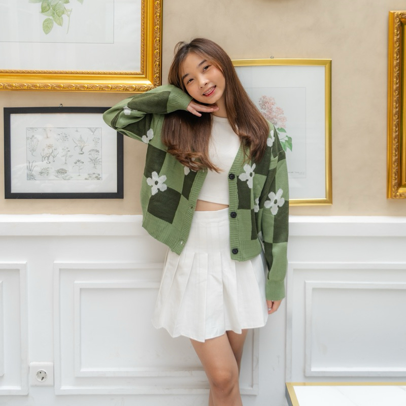 Cardigan Crop Flower Square - Cardigan Rajut Crop Wanita Korean Style