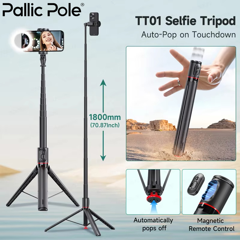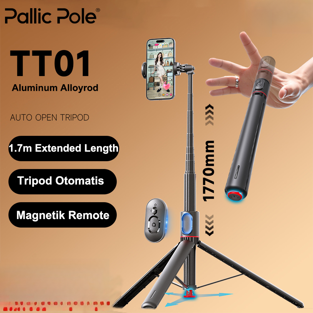 PallicPole TT01 Tri Tongkat Swafoto Pop-Up Otomatis Portable Aluminium Selfie Stick Bluetooth Premium Selfie Stick 1.7M