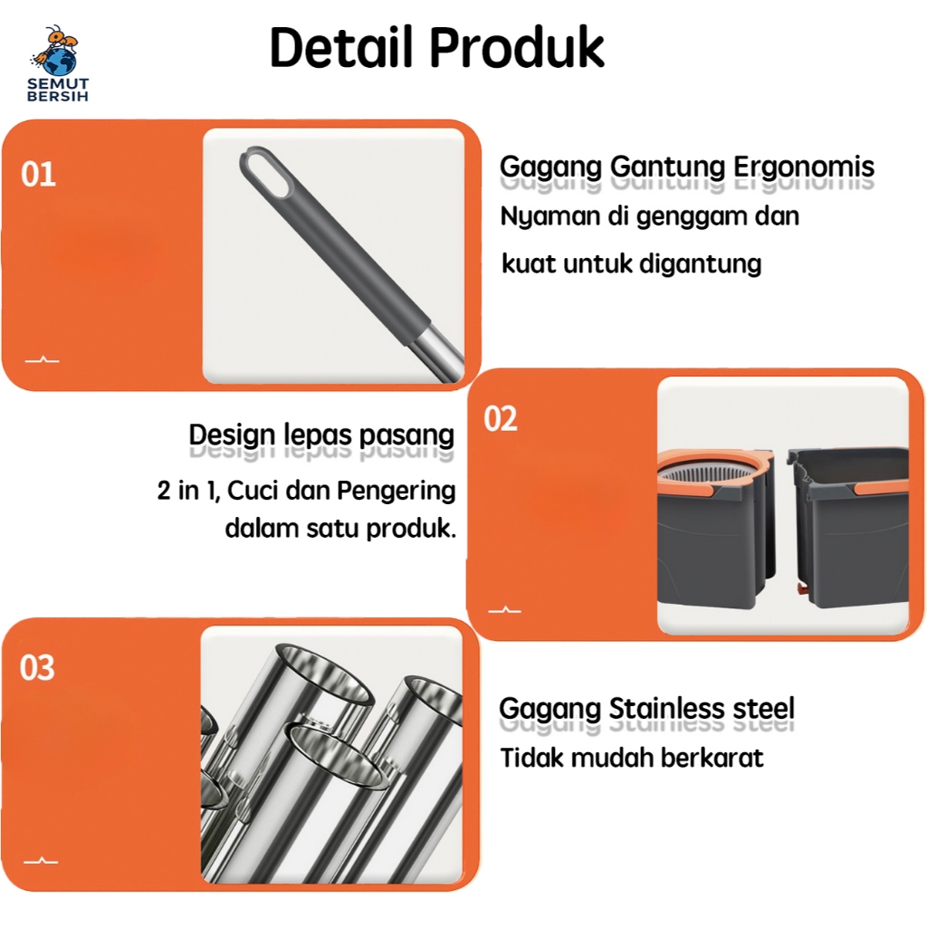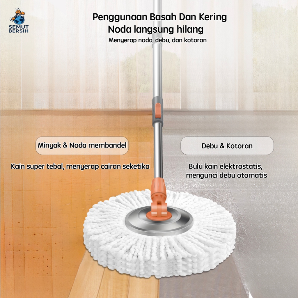 SEMUT BERSIH Pel Lantai Praktis Ultra Mop Pelan Lantai Spin Mop Pel Lantai Putar Mini