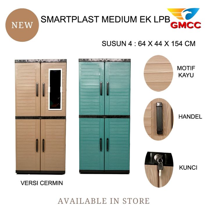 CUCI GUDANG STOCK TERBATAS Lemari Pakaian JUMBO PLASTIK GMCC Smartplast KACA CERMIN KUNCI 4 SUSUN COKLAT