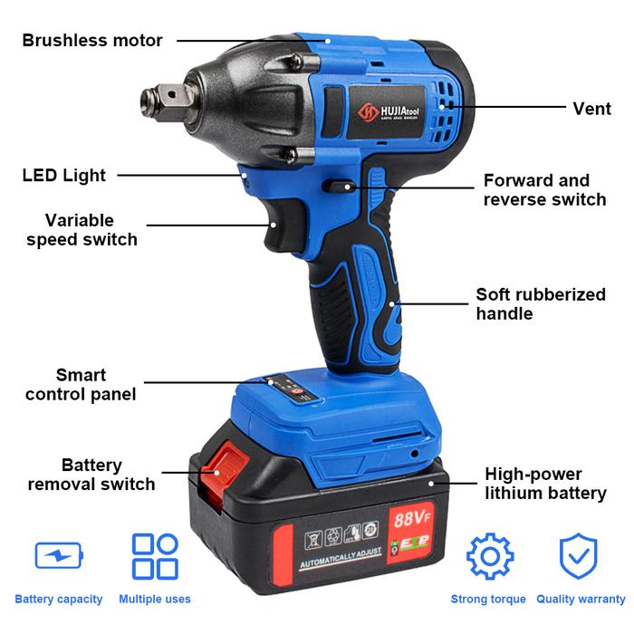 HUJIA Cordless Impact Wrench + Gerinda Mesin Pembuka Baut Ban Roda Mobil Motor Cvt Angle Grinder