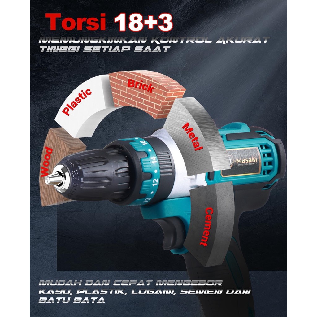 MTMASAKI Mesin Bor Baterai Tangan Cordless Drill 21VF MT-8350