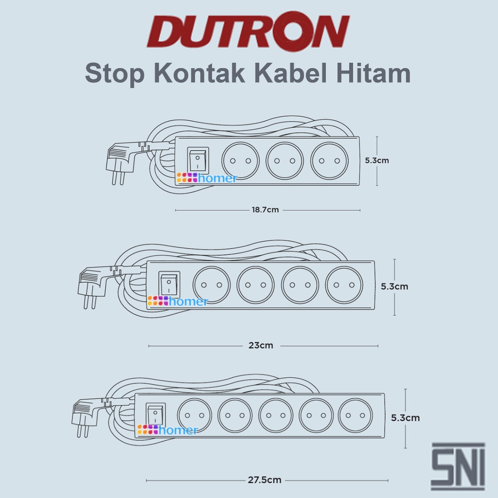 DUTRON Stop Kontak Original BER SNI colokan hitam sambungan kabel listrik 2 3 4 5 lubang lobang panjang kabel asli temba