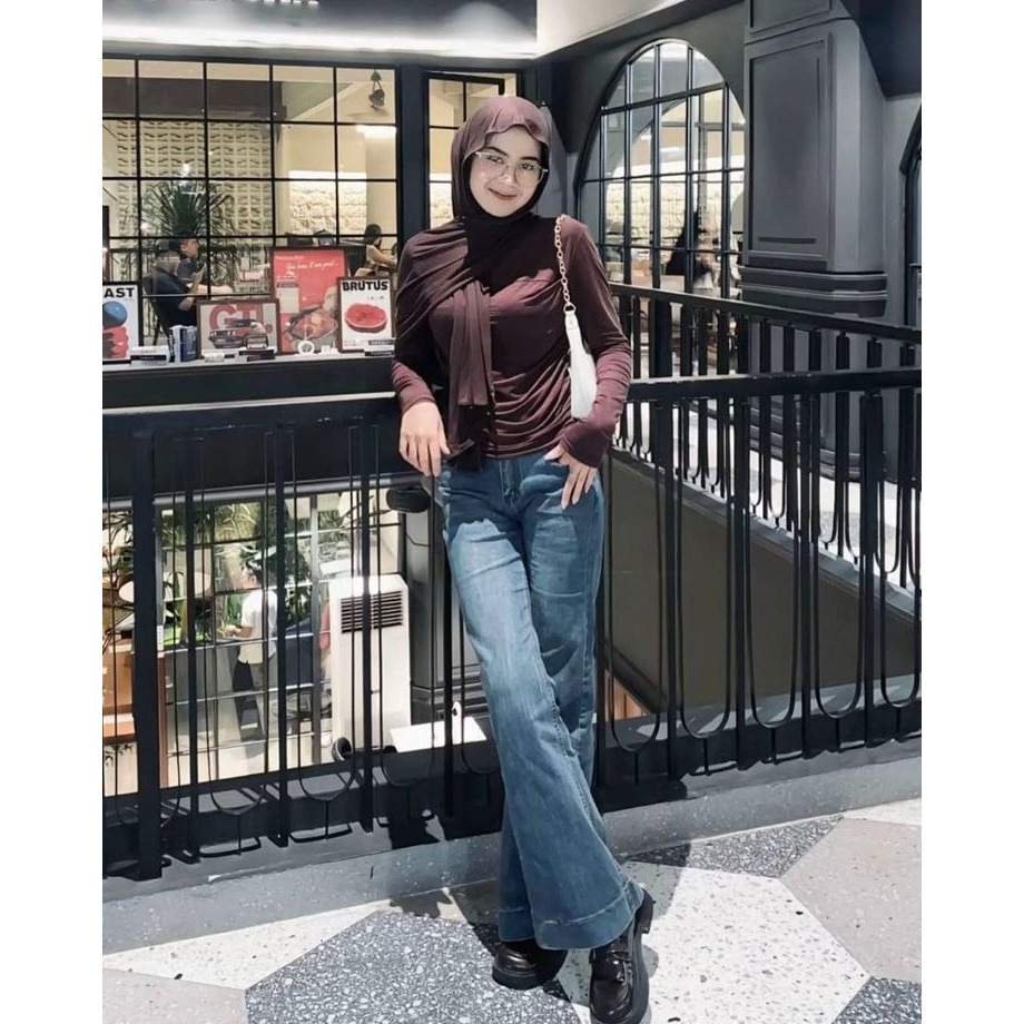 [Star] Celana Jeans Laure Cutbray Wanita Kekinian Lipat Lebar | Highwaist Cutbray Jeans Stretch Bahan Melar 27-38