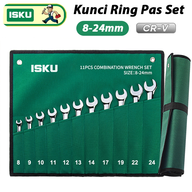 FLASH SALE Kunci Ring Pas Set 11pcs 824mm CRV Mirror Polished Kunci Pas Alat Moto karat dengan Tas