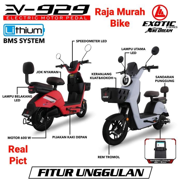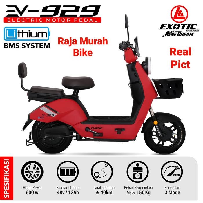 sepeda listrik dewasa/anak tanpa dp murah Exotic EV 929 Lithium 48V / 12AH | 600 Watt - Garansi Resmi