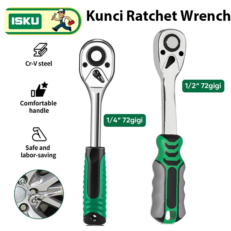 FLASH SALE Gagang Rachet 12 Kunci Shock Wrench 12 dan 14 Kunci Ring Rachet 72 Gigi 24Gigi Dengan Karet