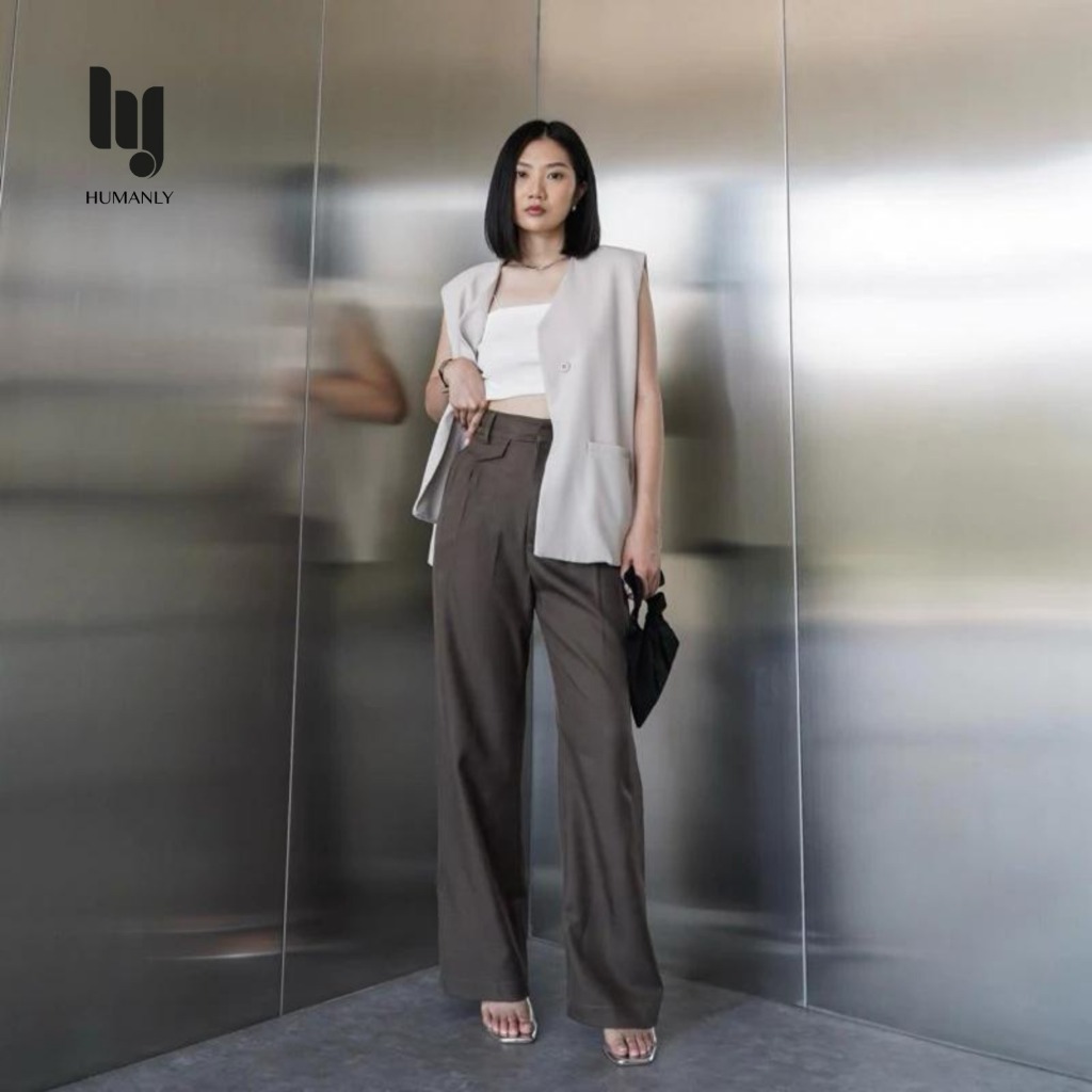 HUMANLY.CO - Reverie Pants HighWaist ORO || Korean Semi Formal Loose Pants