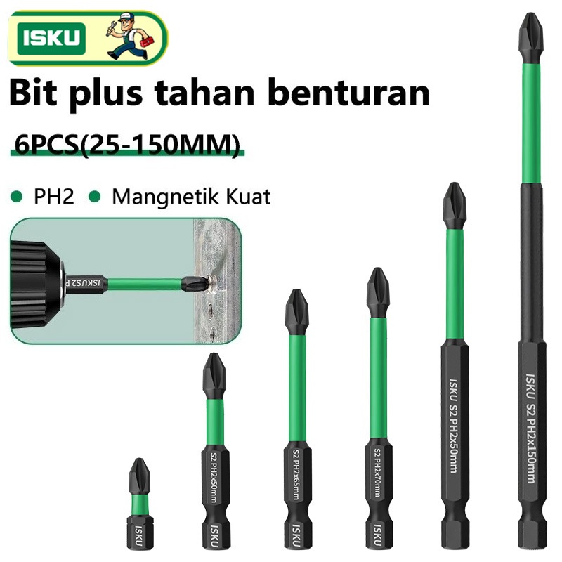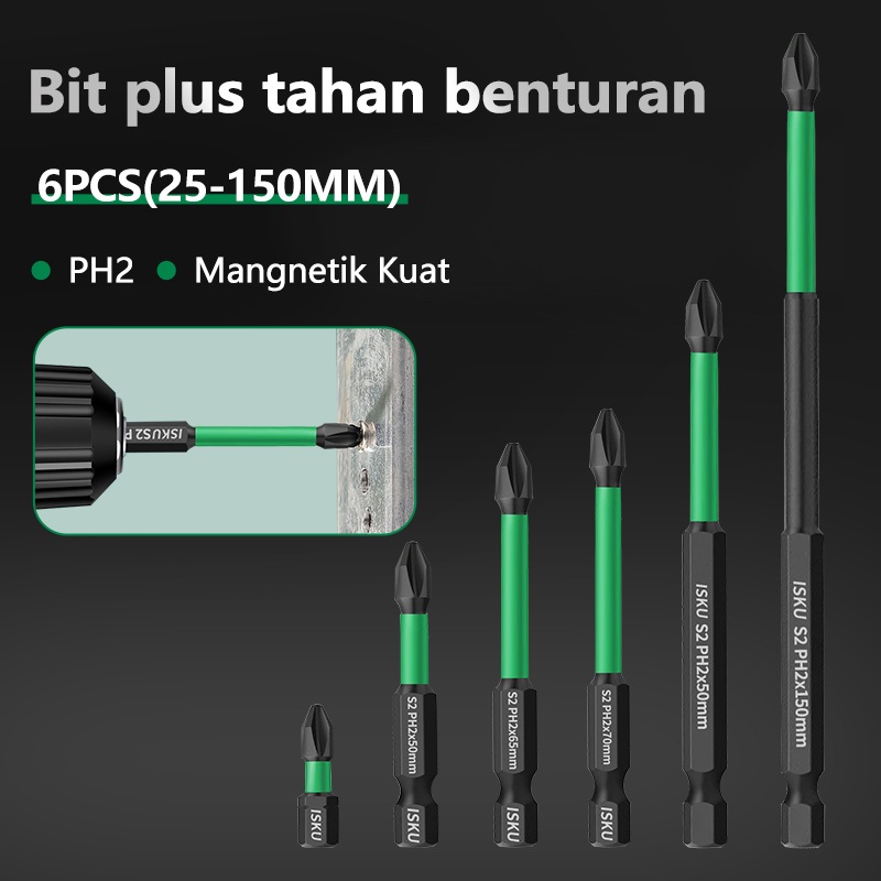 FLASH SALE Mata Bor Obeng Plus Magnet Anti Slip PH2 Magnetic Screwdriver Drill Bit 6pcs Paduan Set Drill