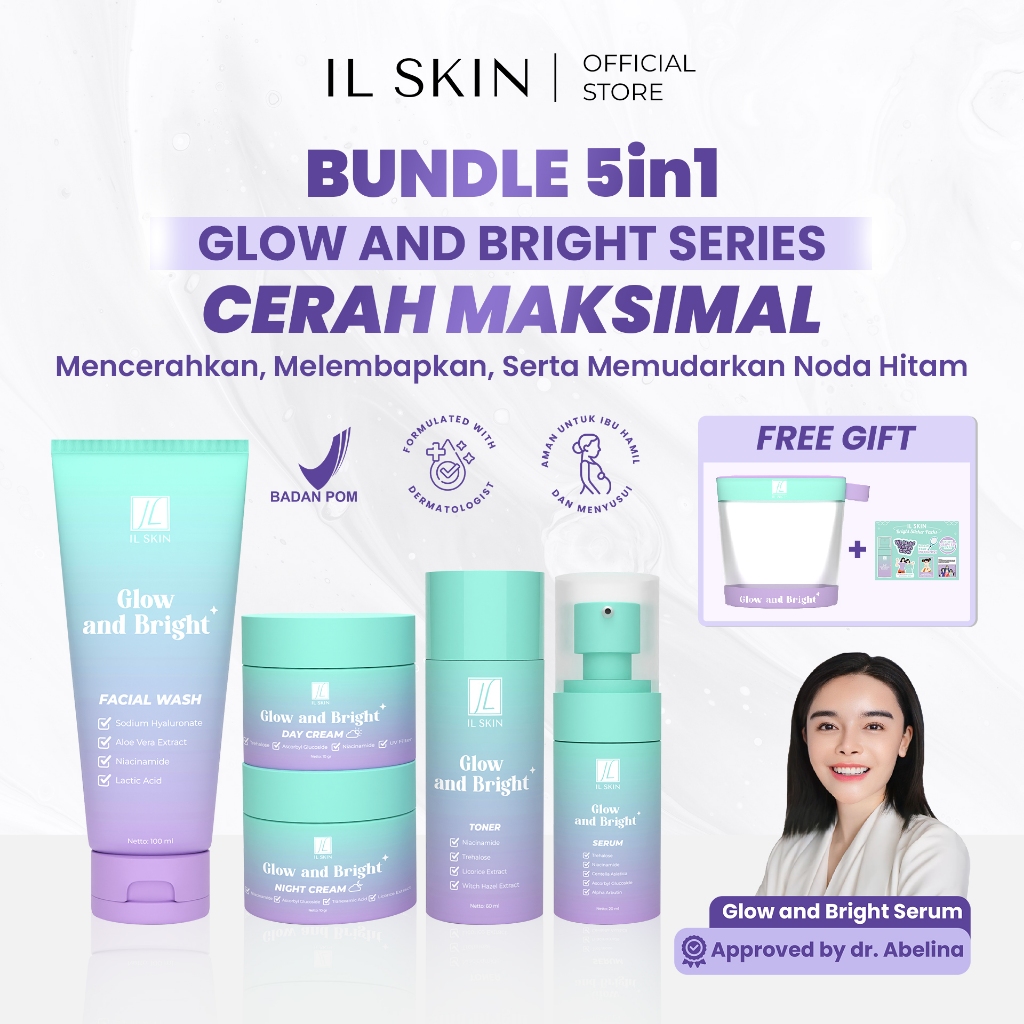 IL SKIN Official Store | IL SKIN Package 5in1 Glow and Bright Series - Facial Wash, Toner, Serum, Day & Night Cream
