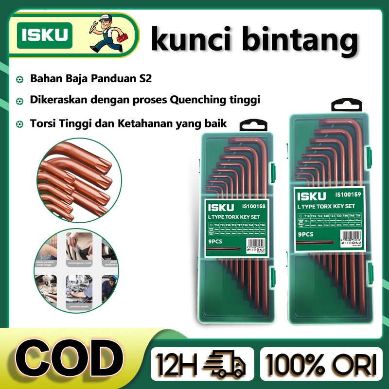 FLASH SALE Kunci L Bintang Set Panjang 9 PcsKunci L Set T10T50 Kunci L Long Torx Key Hex Key Set Wrench