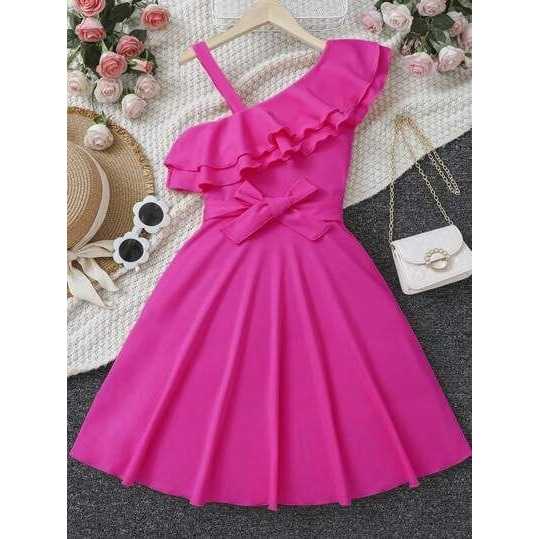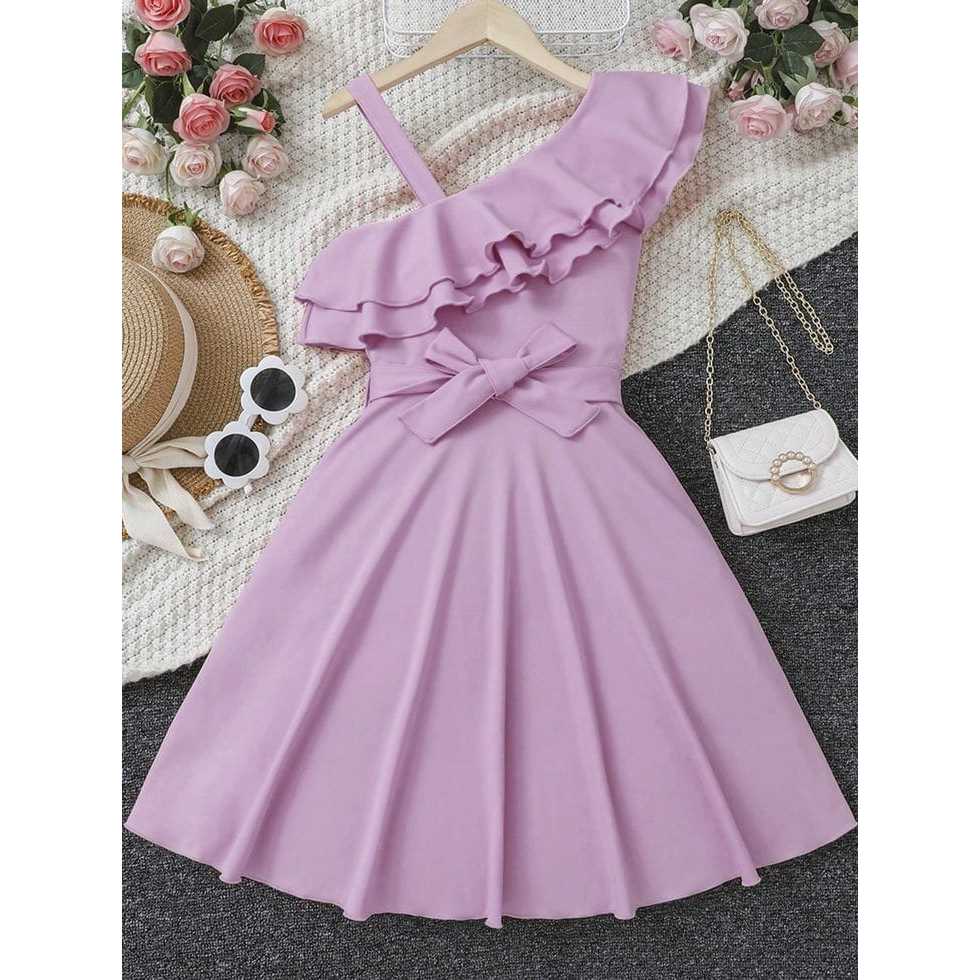 Dress Anak Perempuan One Shoulder Cantik Elegan Bahan Scuba Usia 1-6 Tahun