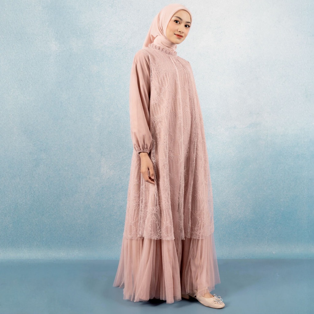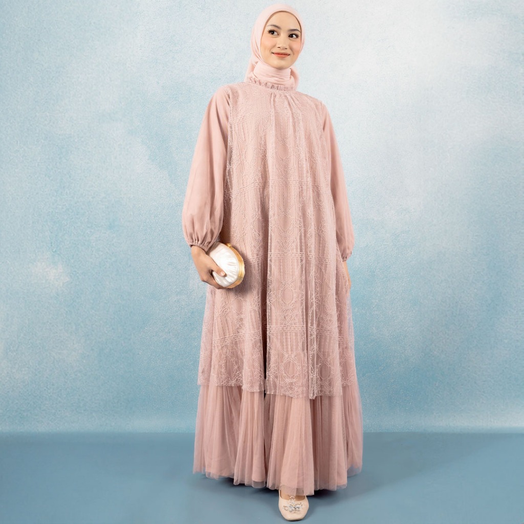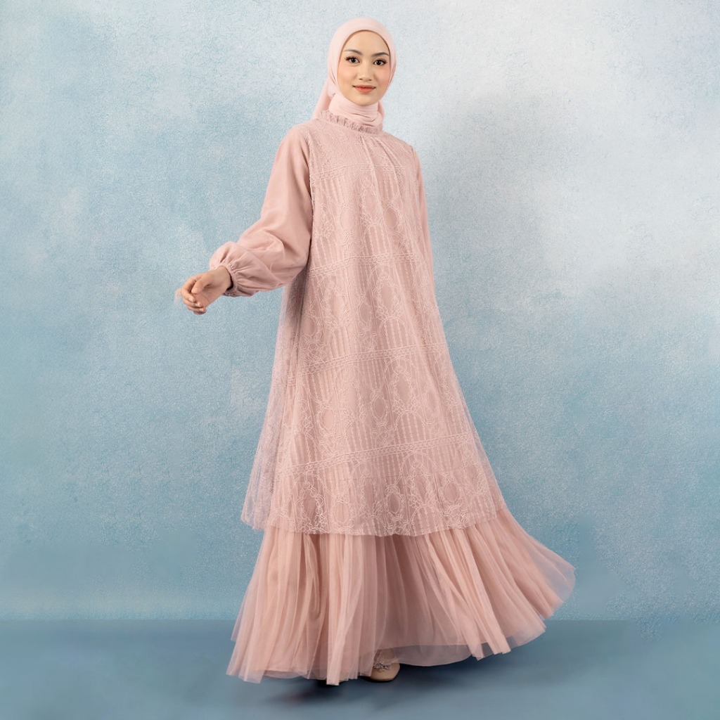 Gaun Brukat Tulle Kondangan Elegan Best Seller Syahira Pink Nude Dress Kekinian