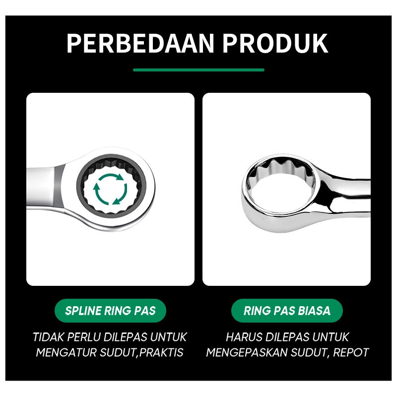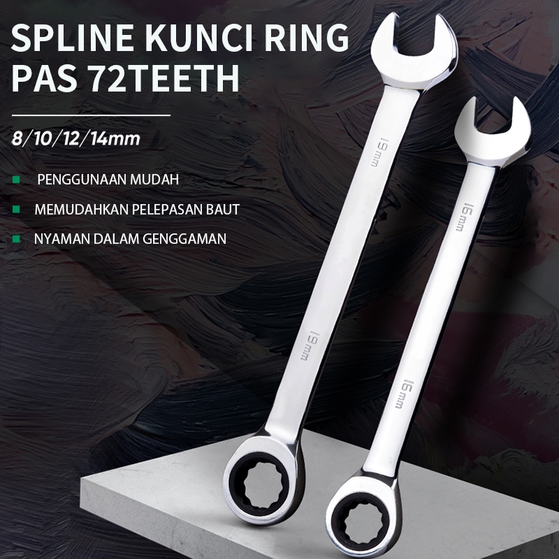 FLASH SALE Kunci Ring Rachet Pas Set 819mm Multifungsi Bolak Balik Kunci Rachet Ring Pas 72gigi Set
