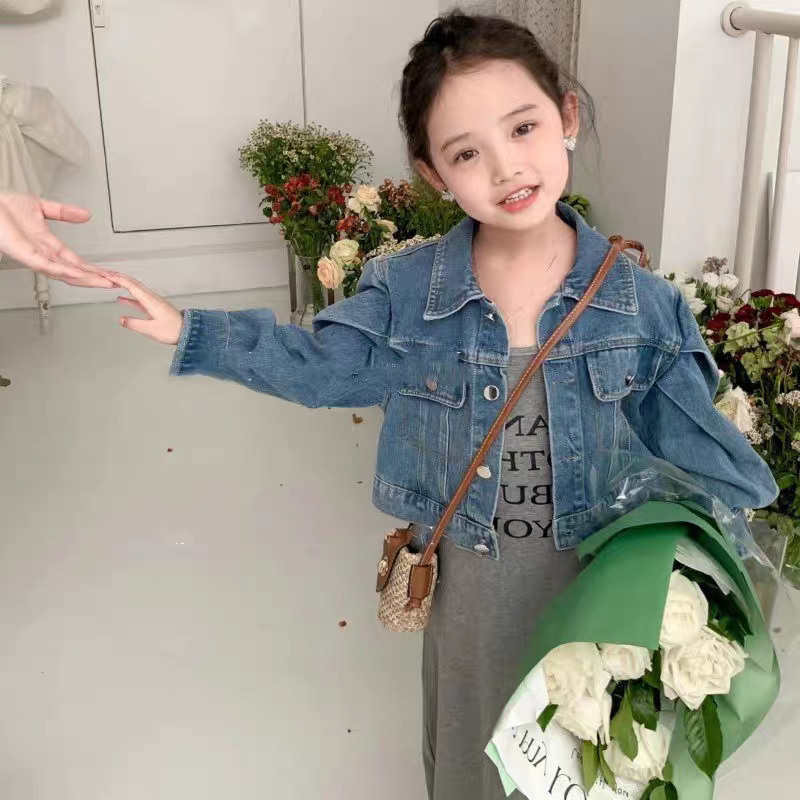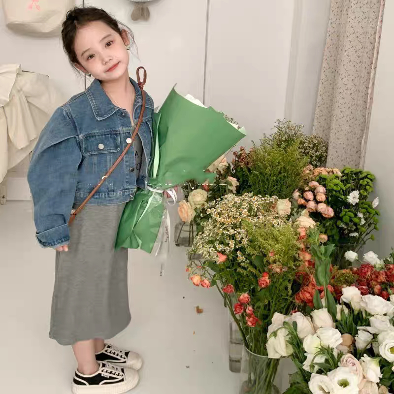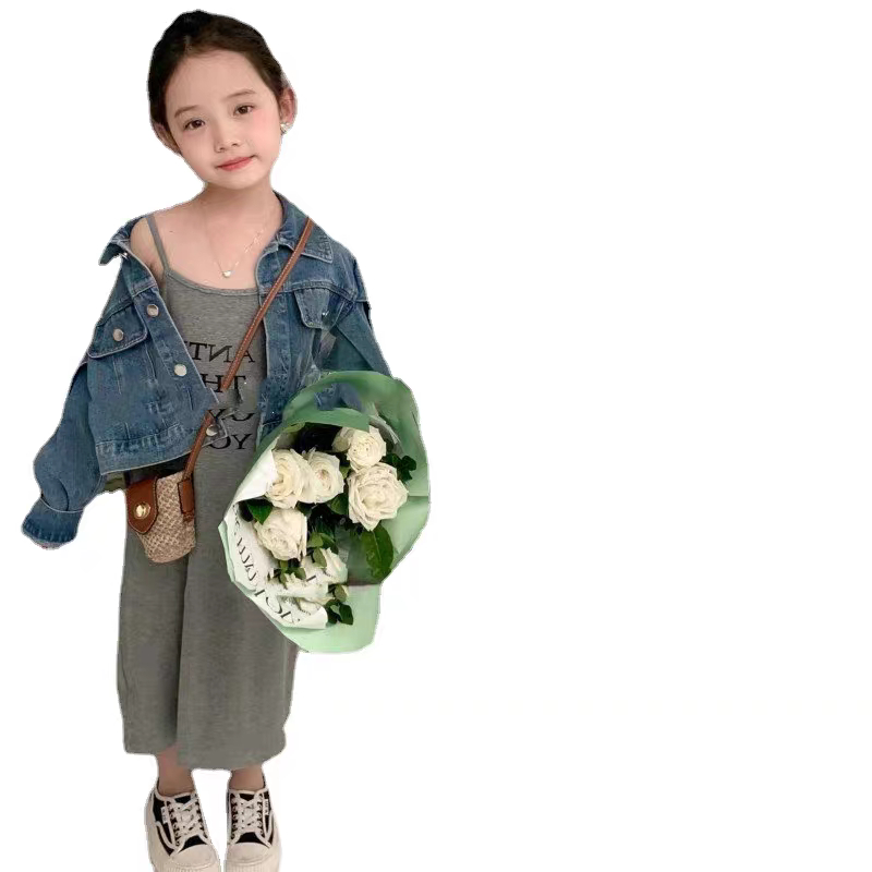 Korea Style Setelan Anak Perempuan Atasan Jaket Jeans Lengan Panjang+Dress Panjang Bahan Katun Setelan Manis Anak Peremp