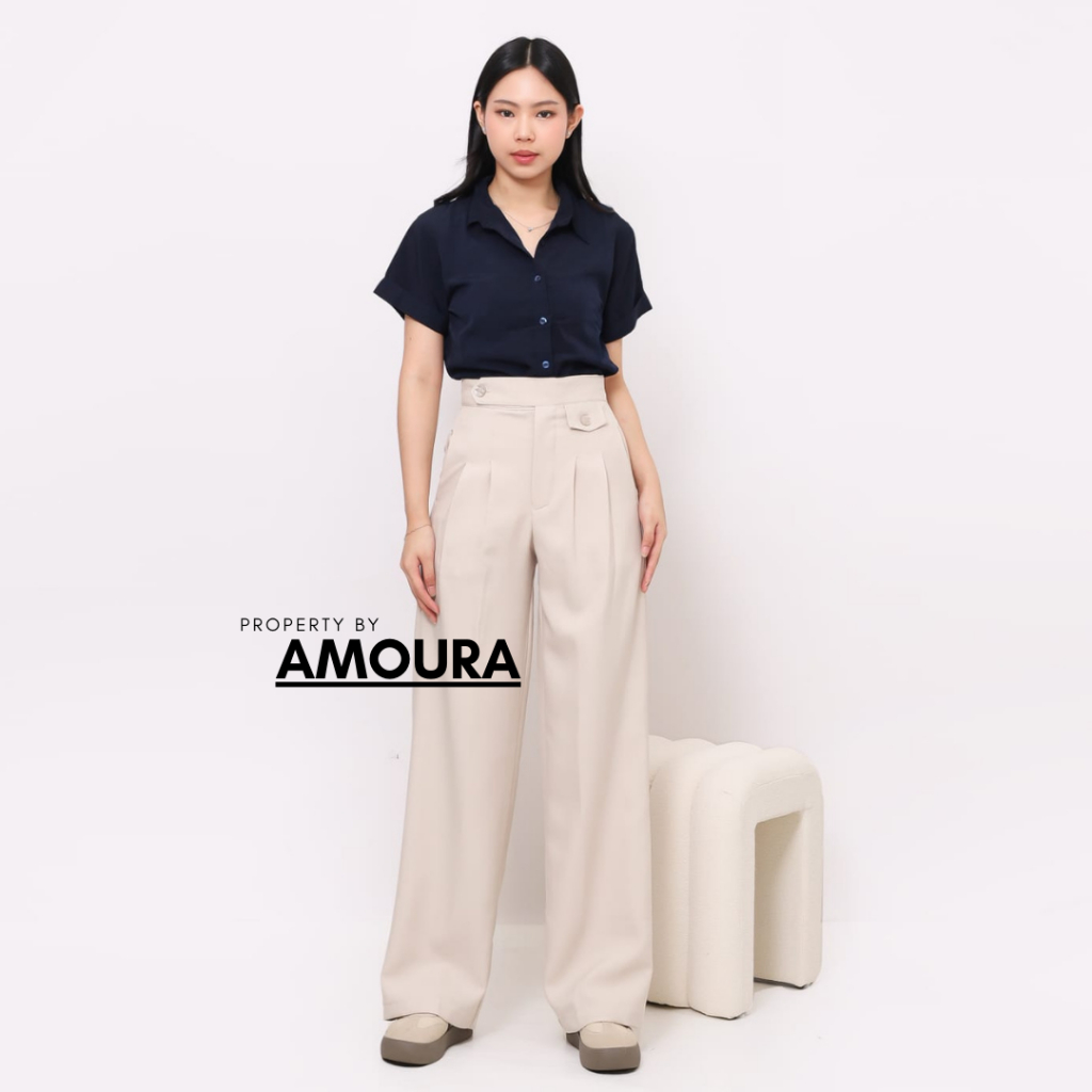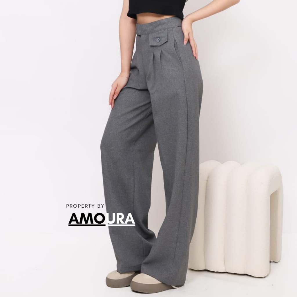 AMOURA - Celana Panjang Wanita Wide Highwaist Pants Basic Korean Long Trousers