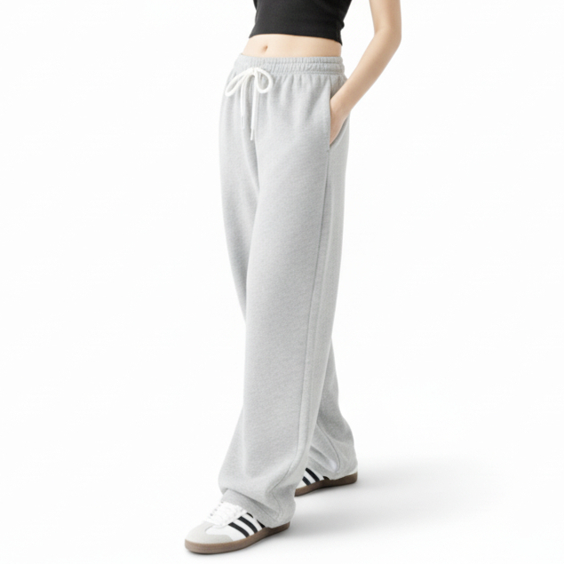 Afd Celana Sweatpants Loose Baggy Fleece Wanita Abu Misty