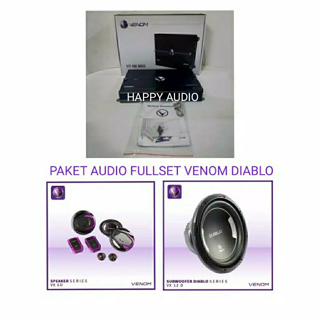 Paket Audio Mobil Venom Diablo Full Set Speaker Split Power 4 Channel Subwoofer 12 Inch Hitam