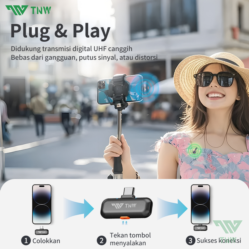 Tnw X27 Mini Wireless Lavalier Microphone Hidden Mic Clip-On Noise Cancelling Dual Mikrofon Untuk Vlogging Live Streamin