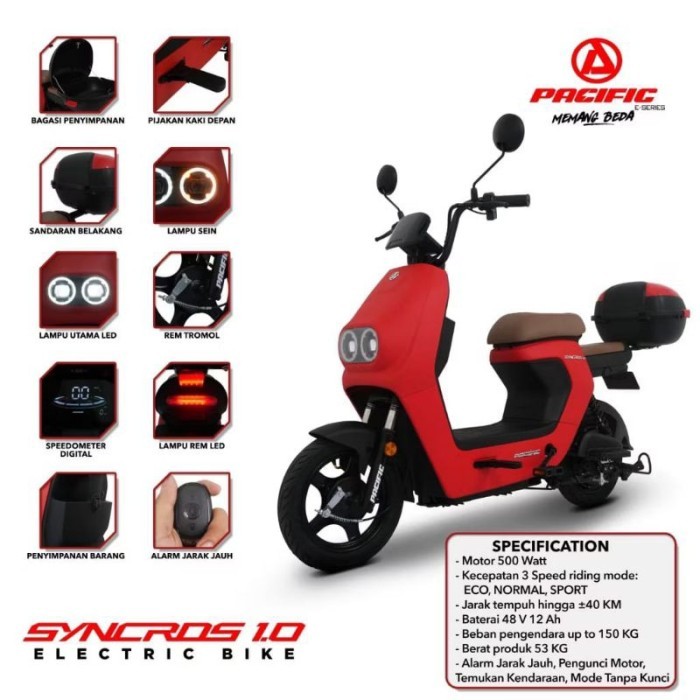 sepeda listrik murah terjangkau tanpa dp dewasa/anak murah Electric Syncross 1.0 By Pacific 500 Watt - Garansi Resmi