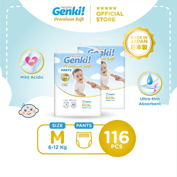 NEPIA GENKI Pants Popok Celana Bayi Premium Soft M58 - Twin Pack