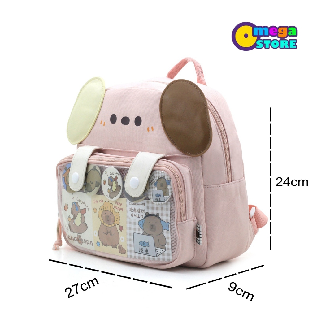 Backpack Sekolah Anak PAUD/TK Tas CAPYBARA CLEAR BAG Free PIN Korean Import -OS402
